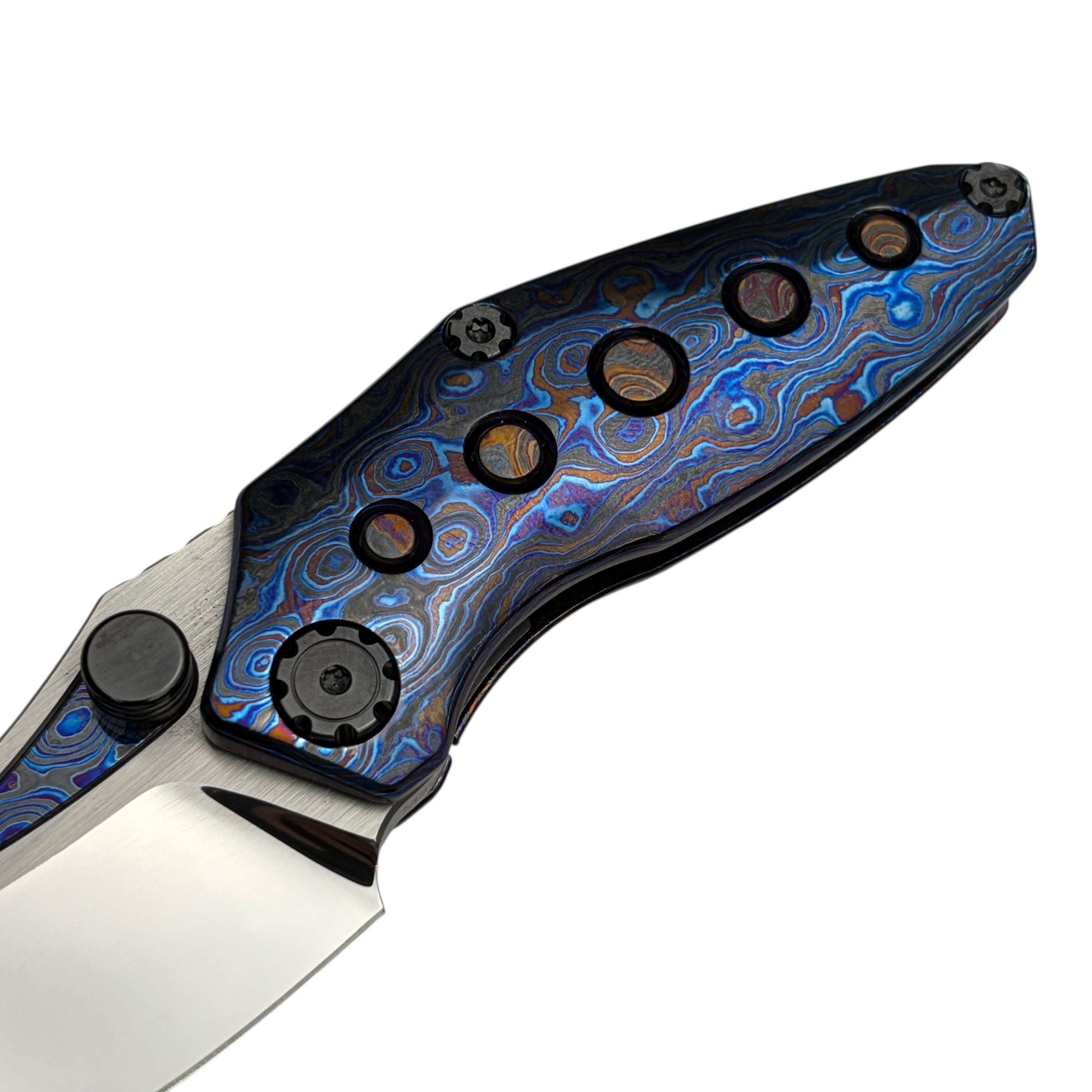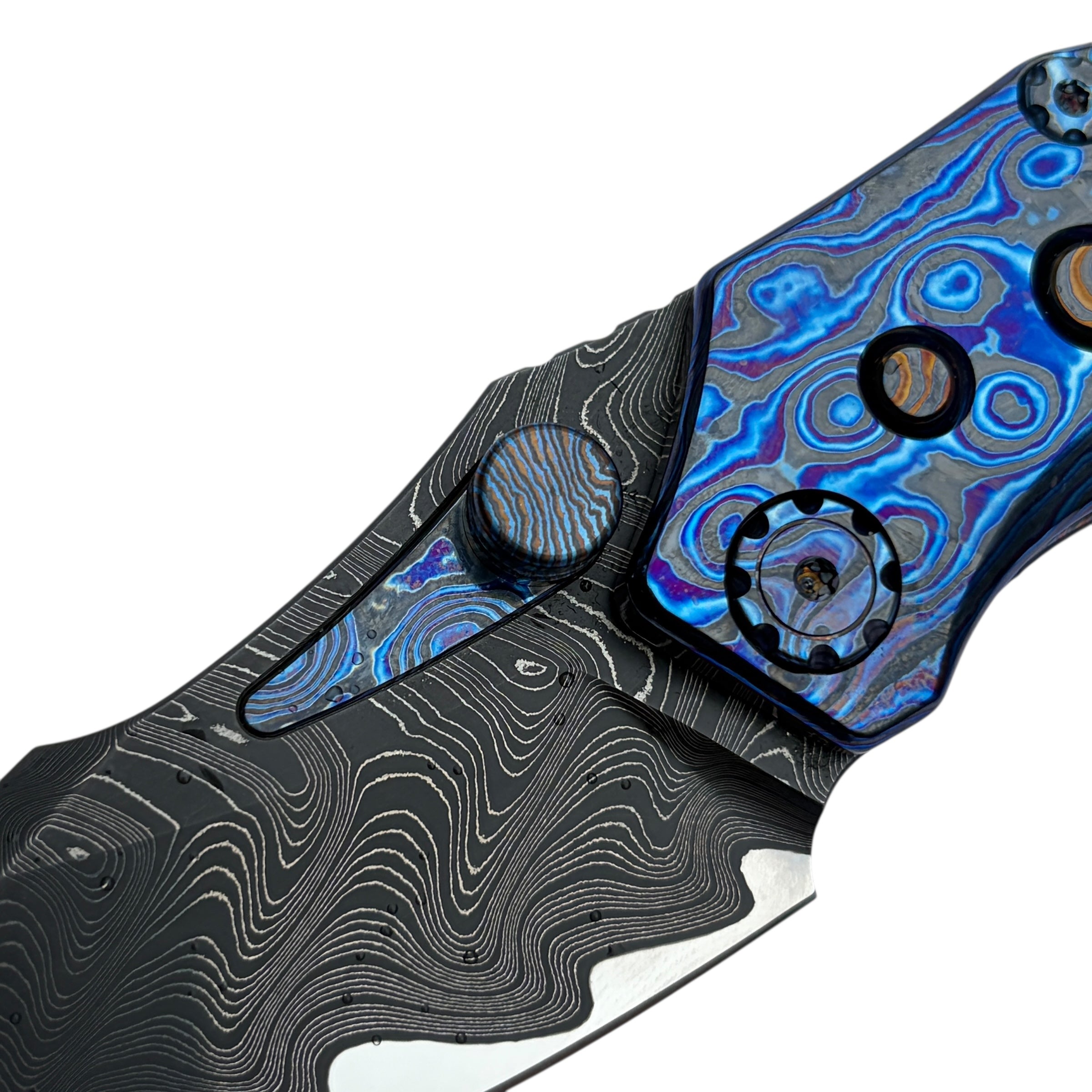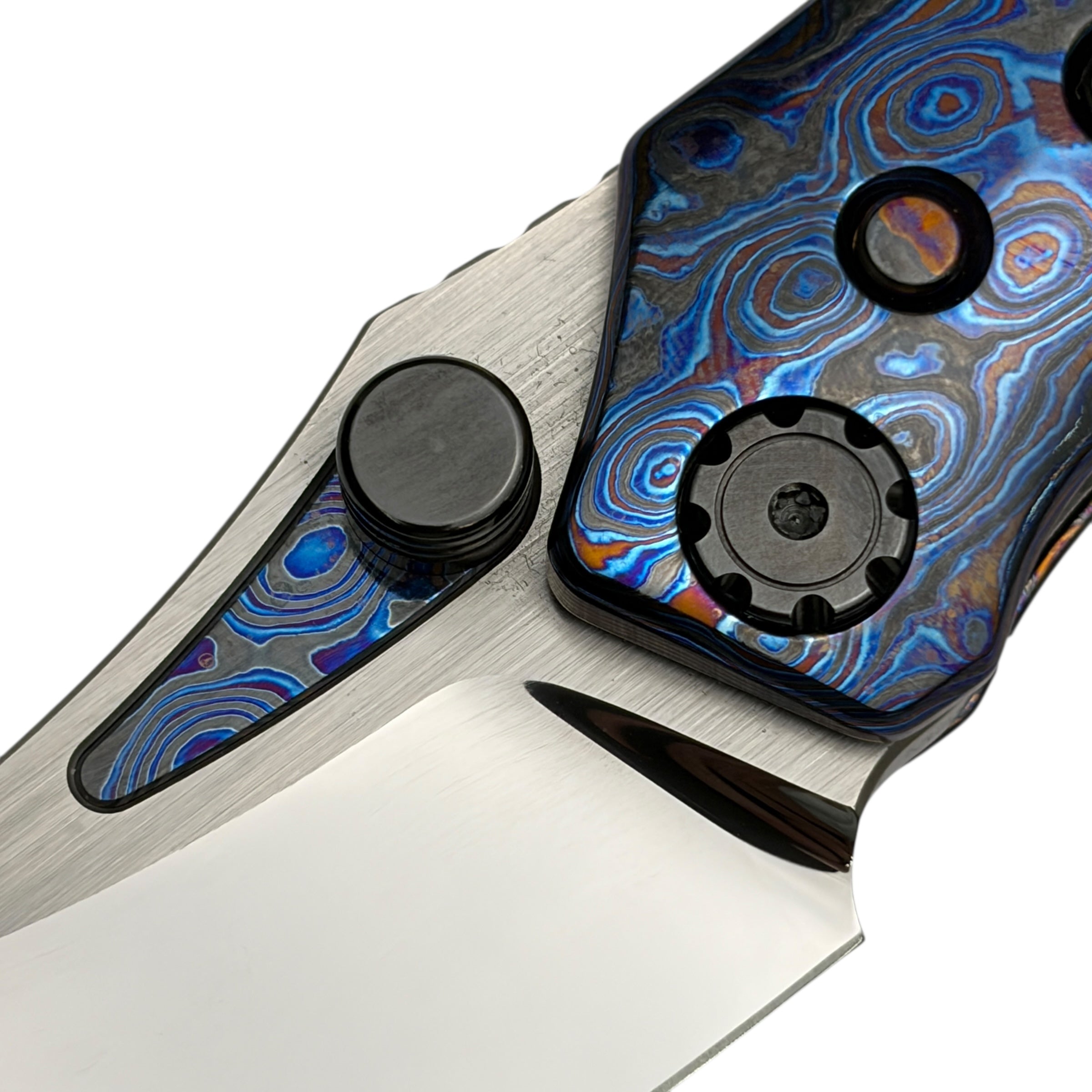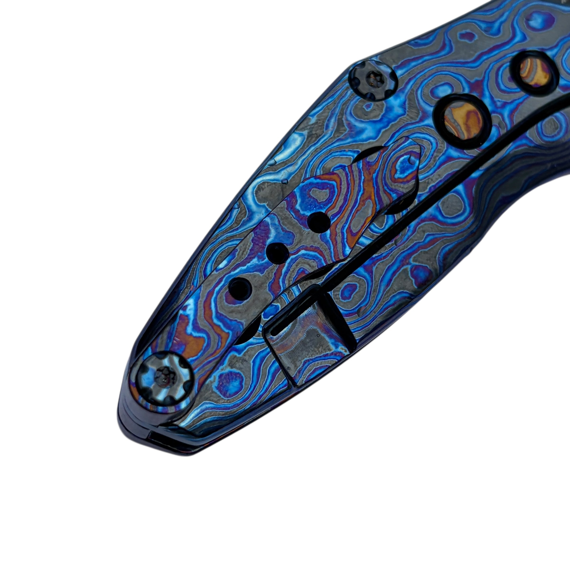 What truly sets this version apart is its Timascus handle accents, adding depth, color, and a distinct premium character that elevates the Rookie well beyond standard production folders. The knife feels balanced and substantial in hand while maintaining a slim, pocket-friendly profile suitable for daily carry.