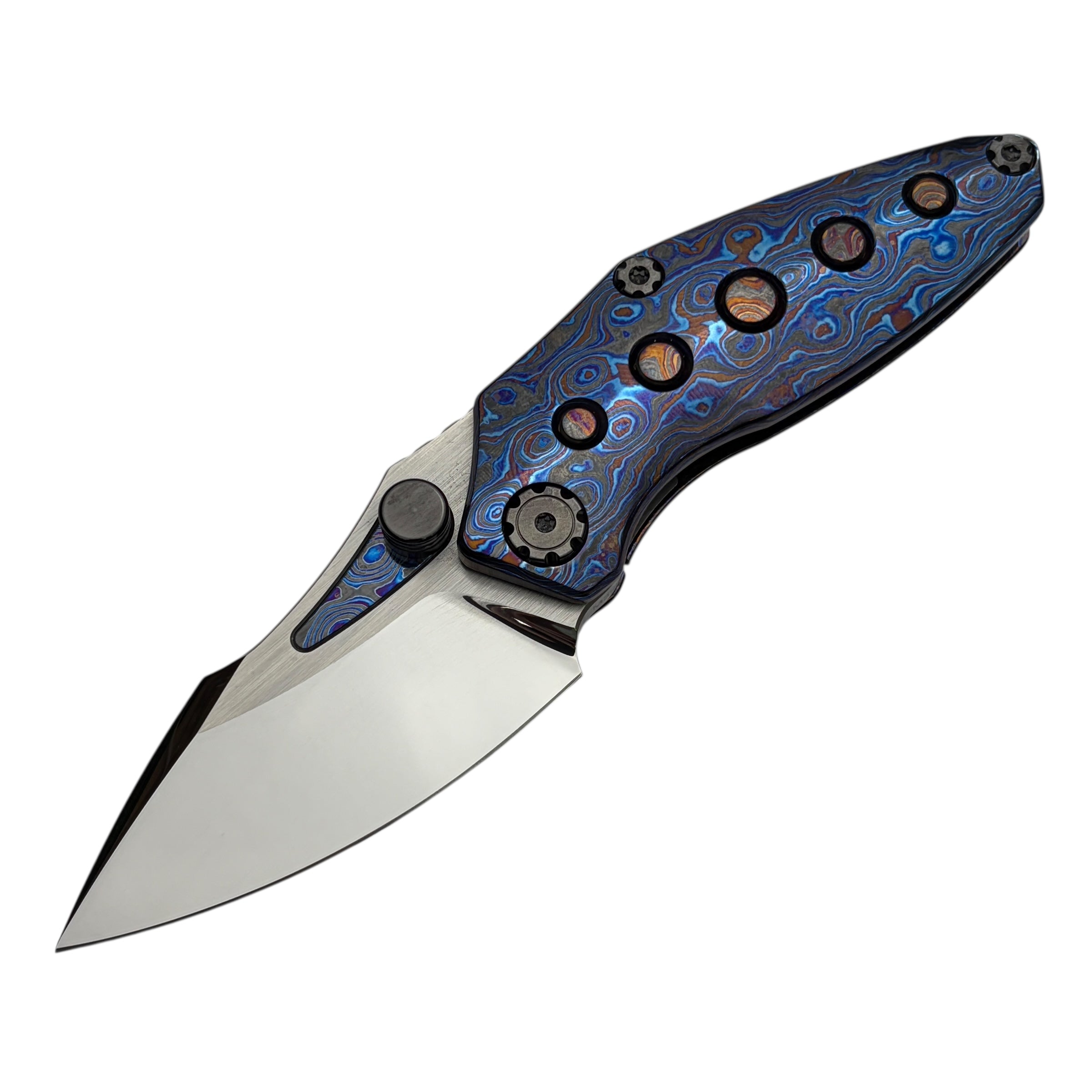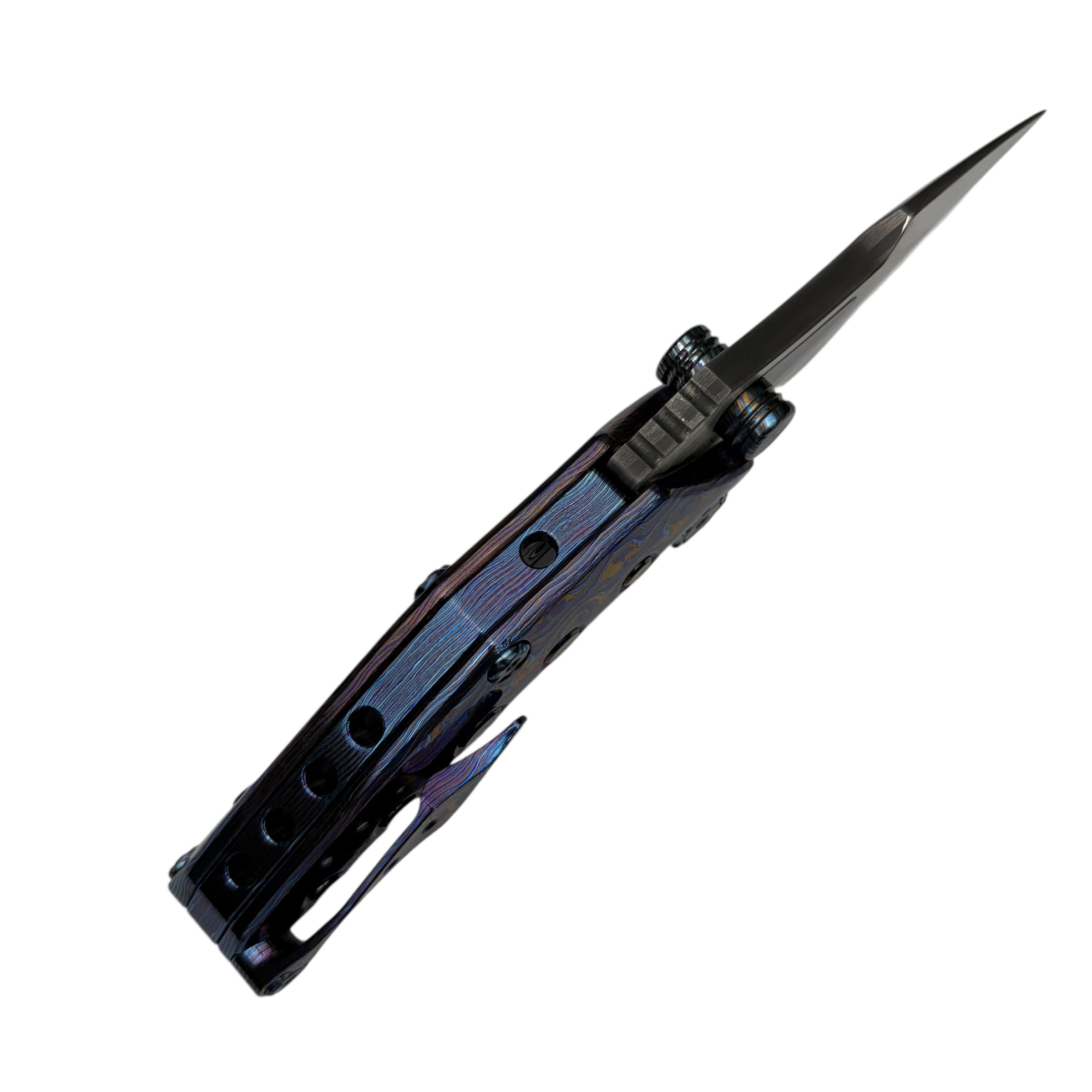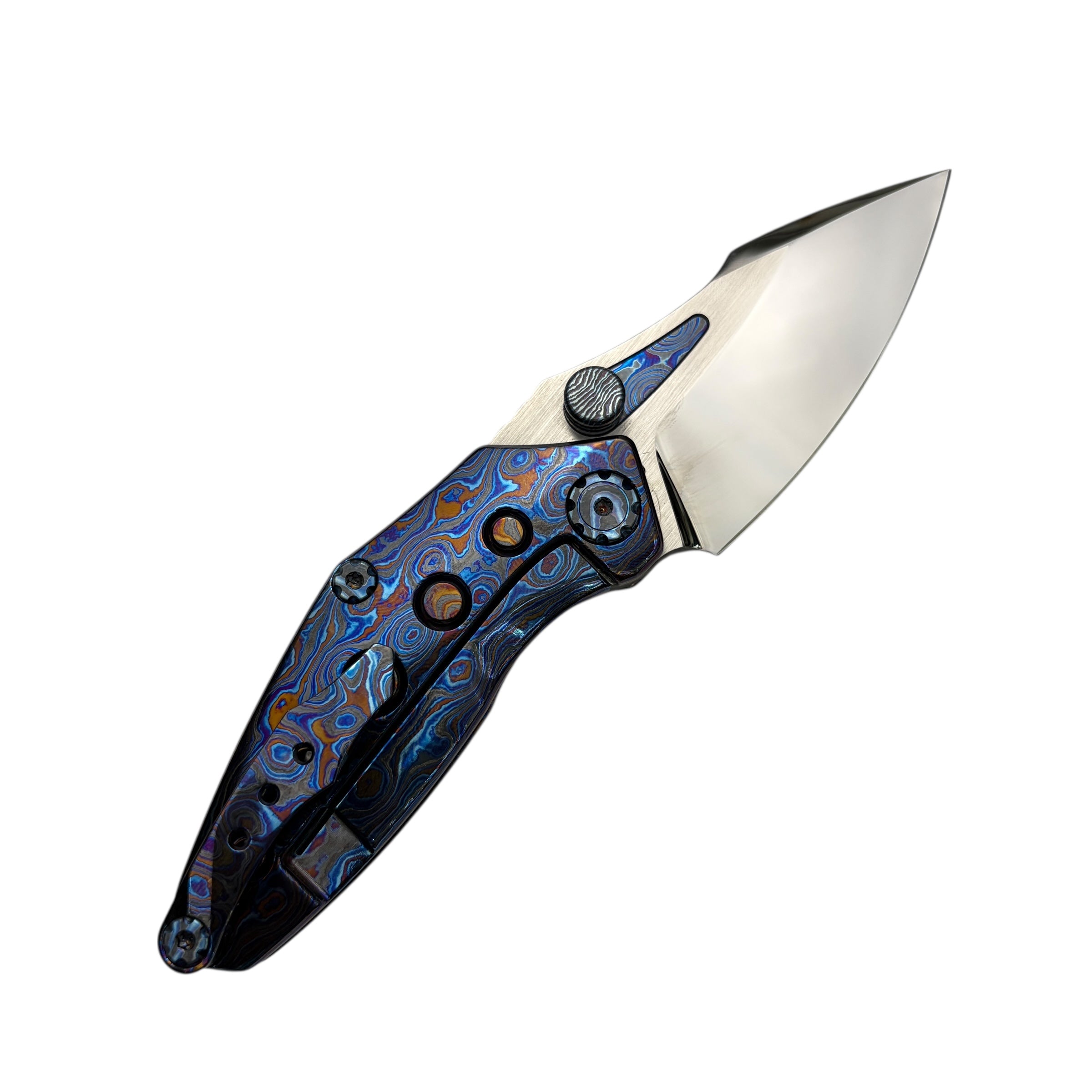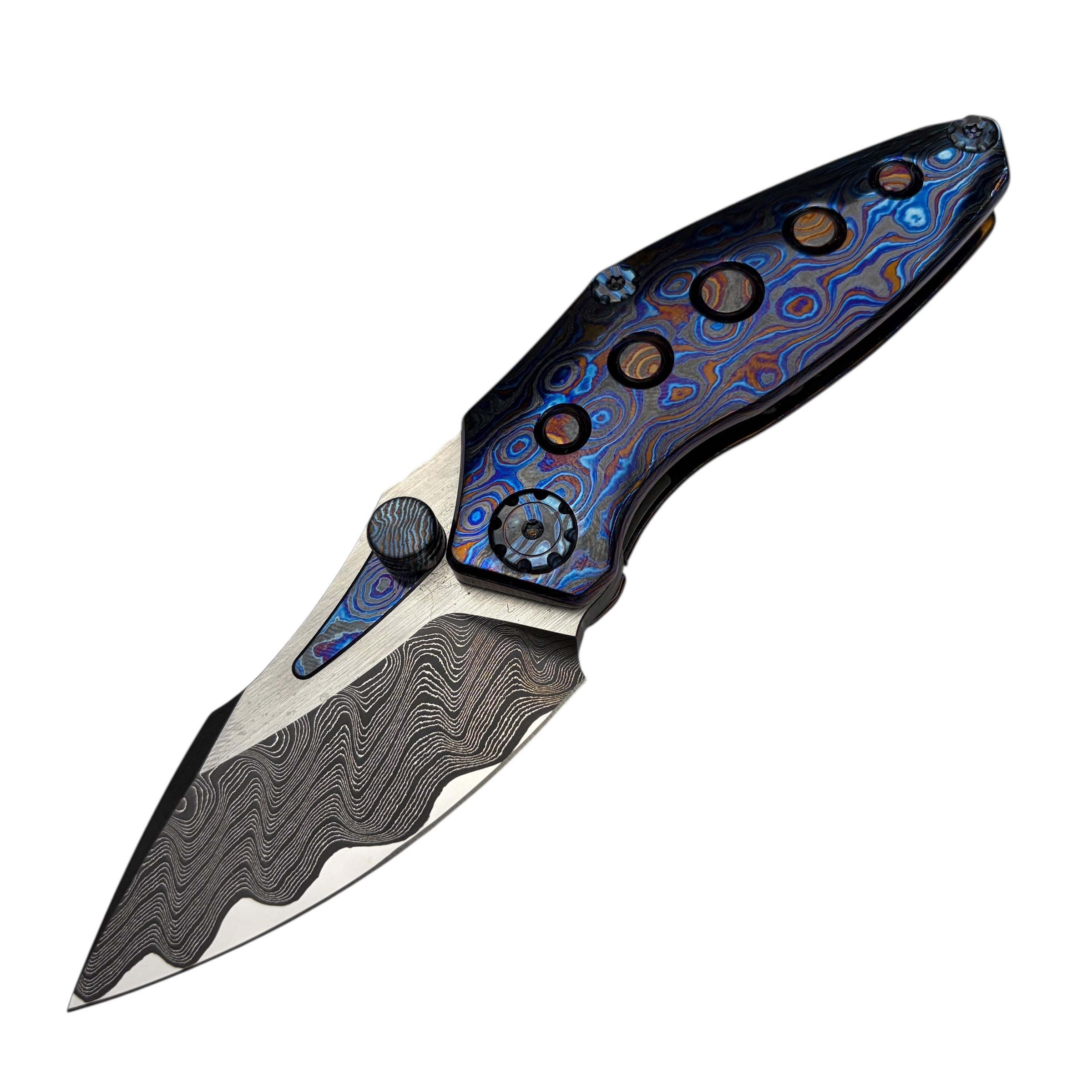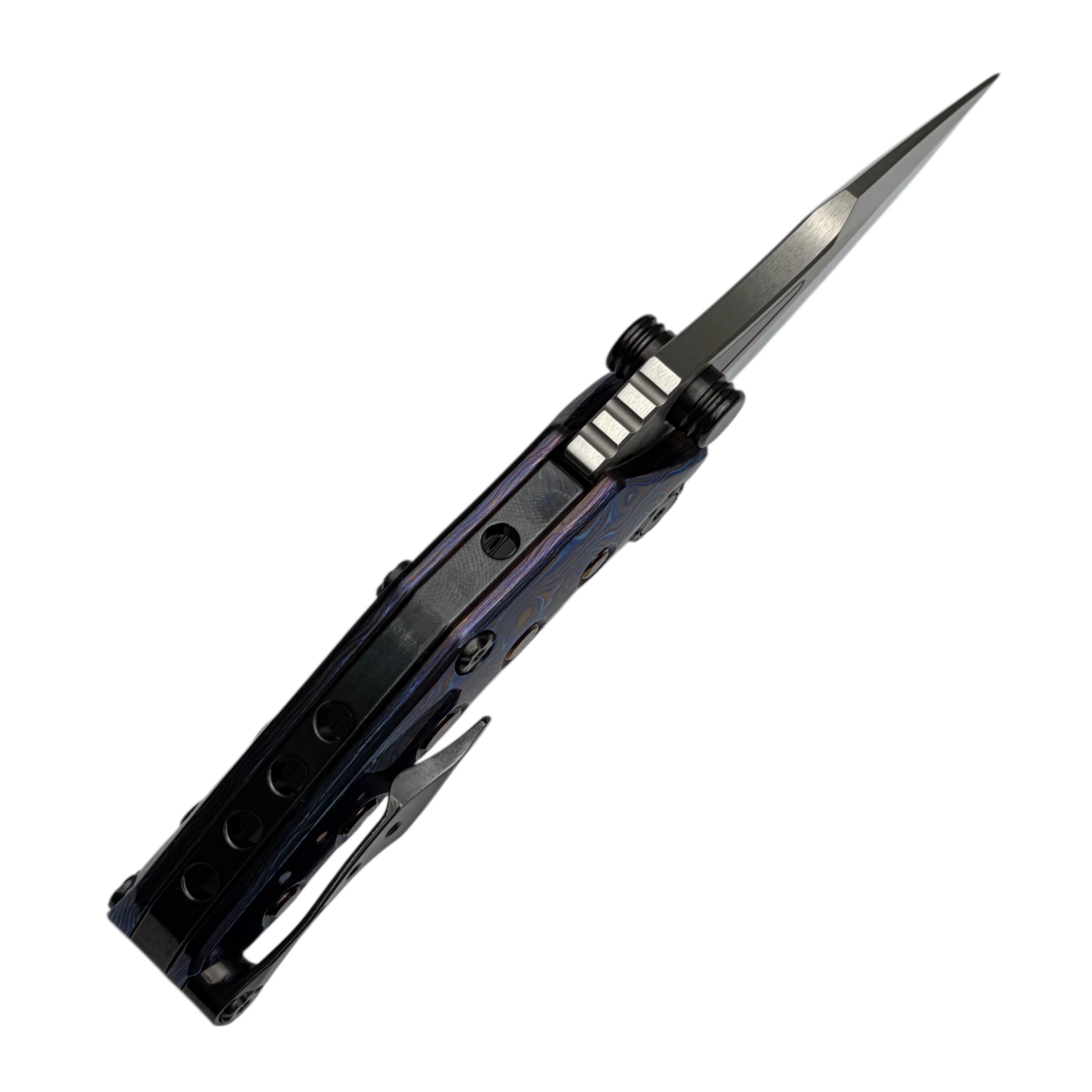What truly sets this version apart is its Timascus handle accents, adding depth, color, and a distinct premium character that elevates the Rookie well beyond standard production folders. The knife feels balanced and substantial in hand while maintaining a slim, pocket-friendly profile suitable for daily carry.