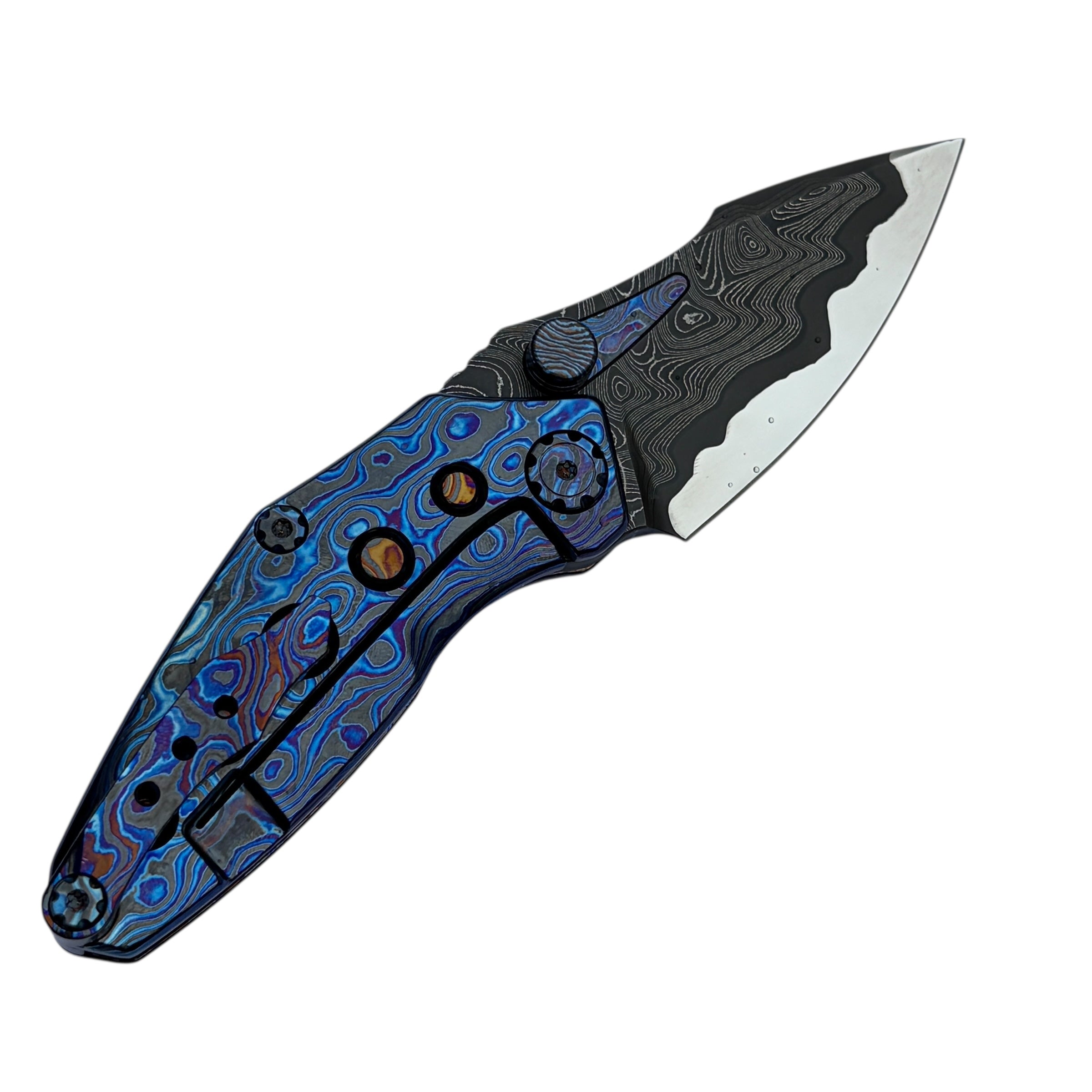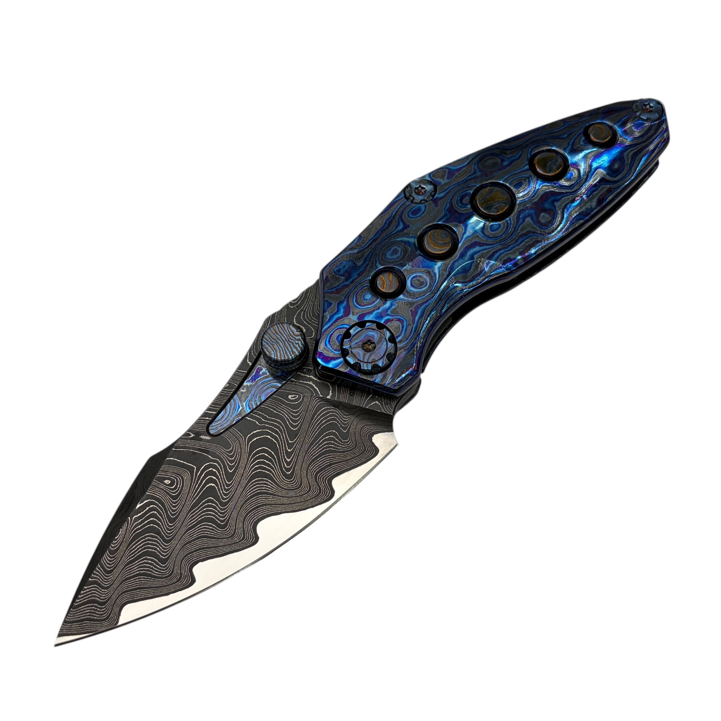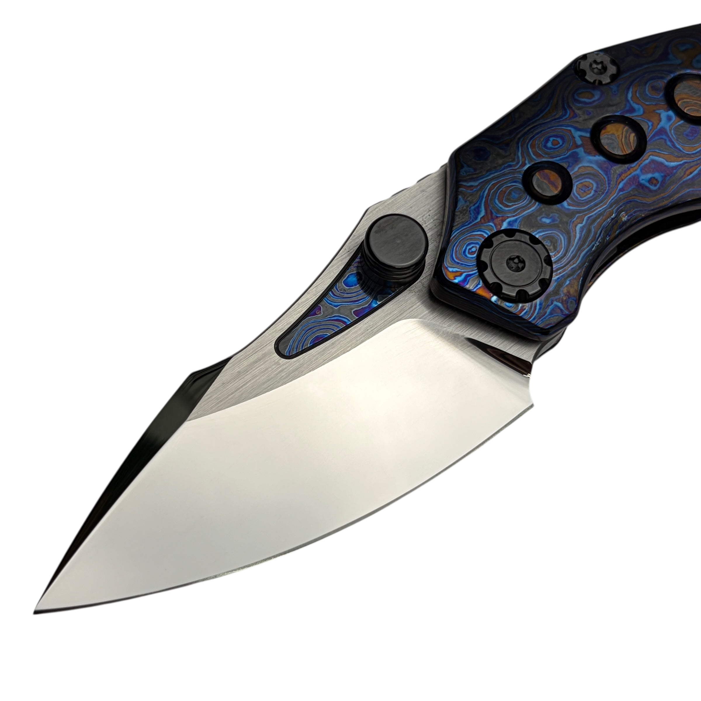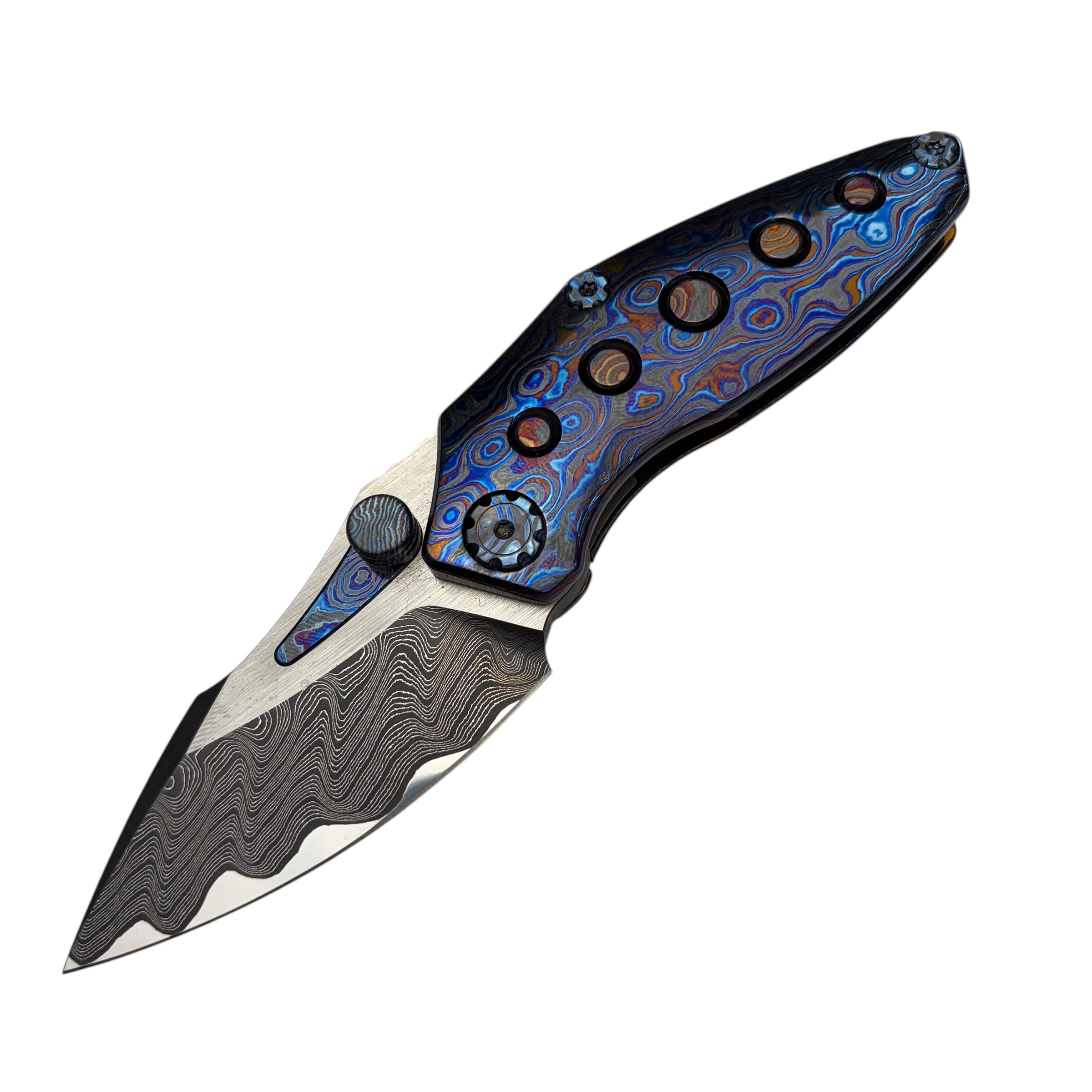 What truly sets this version apart is its Timascus handle accents, adding depth, color, and a distinct premium character that elevates the Rookie well beyond standard production folders. The knife feels balanced and substantial in hand while maintaining a slim, pocket-friendly profile suitable for daily carry.