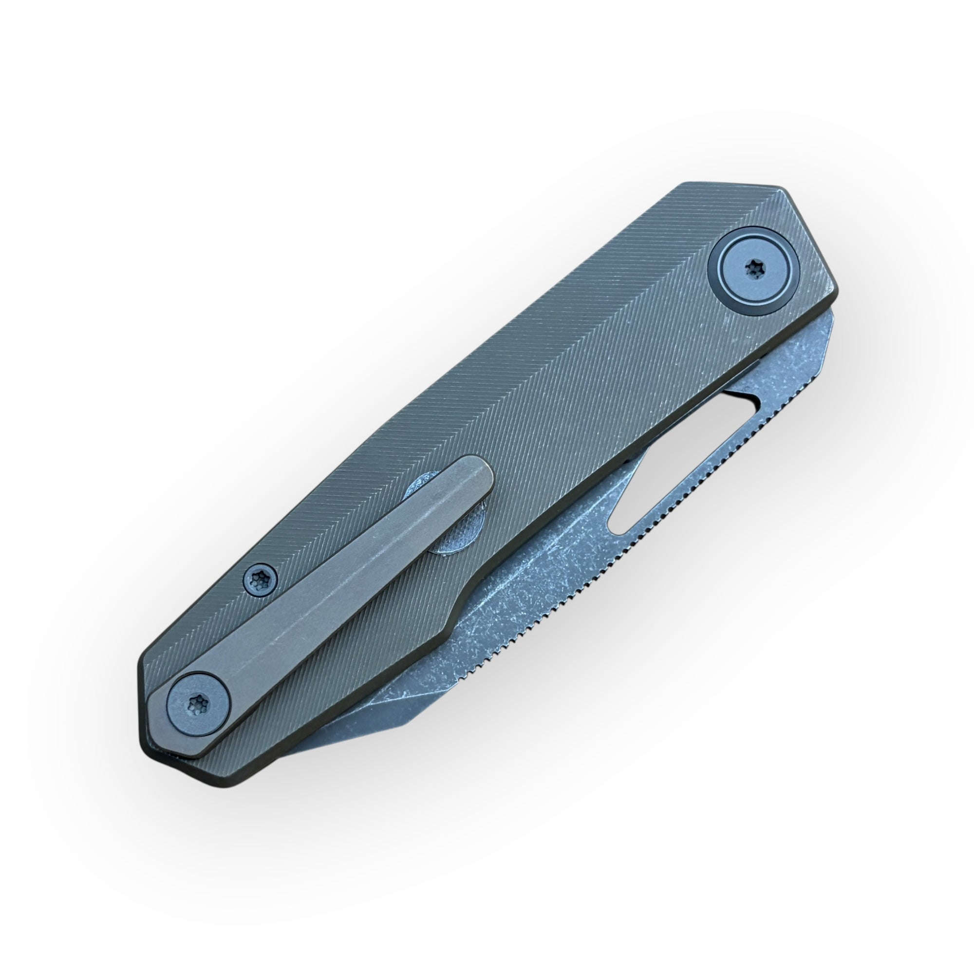 Pocket Clip: Milled titanium, color-matched to the scales