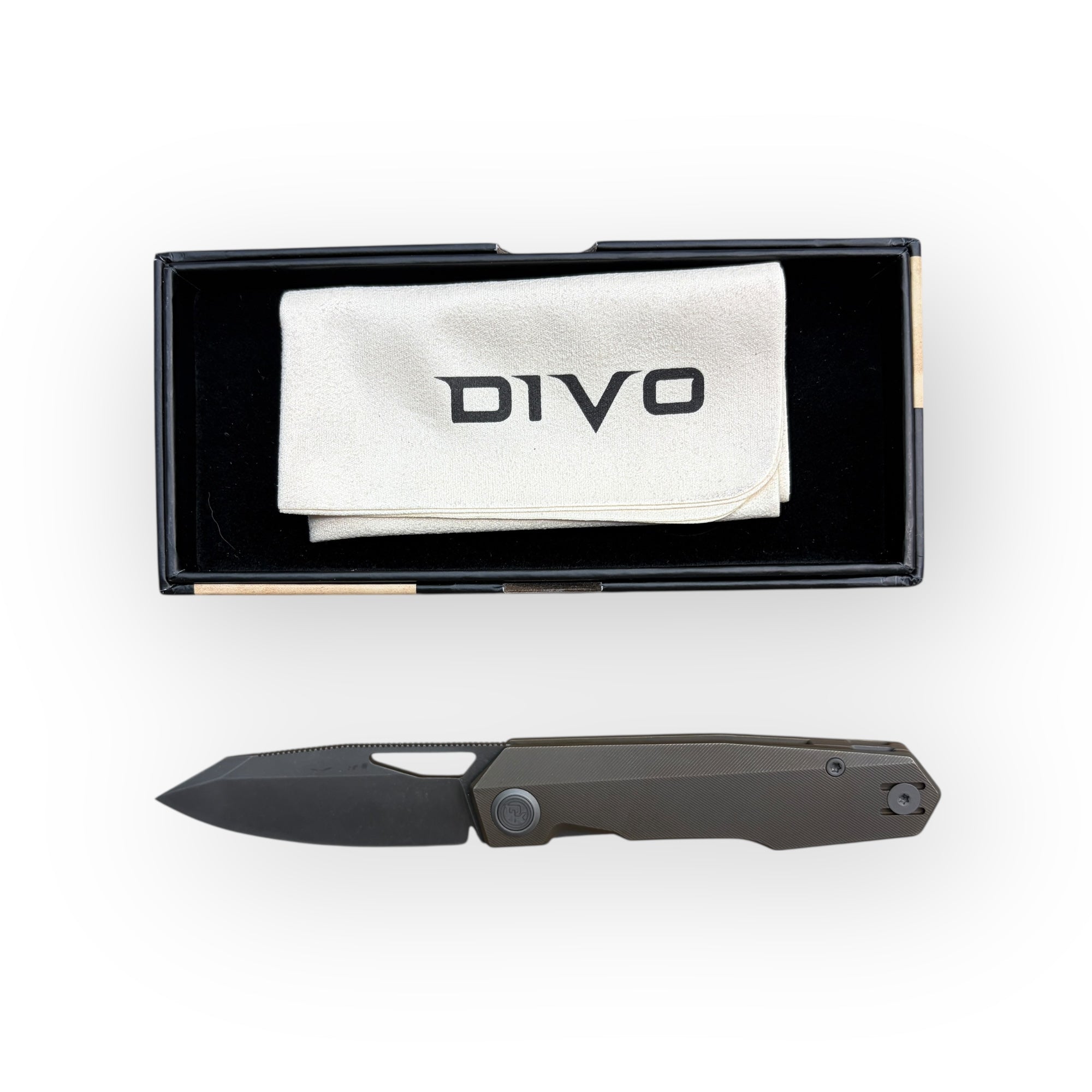 This Divo Saloon x Blade City Exclusive is an early release of Divo’s latest premium folding knife. A true collector’s piece, Featuring a distinctive acid-washed S90V blade paired with bronzed titanium scales and a milled titanium pocket clip, giving it a rugged, upscale finish throughout.