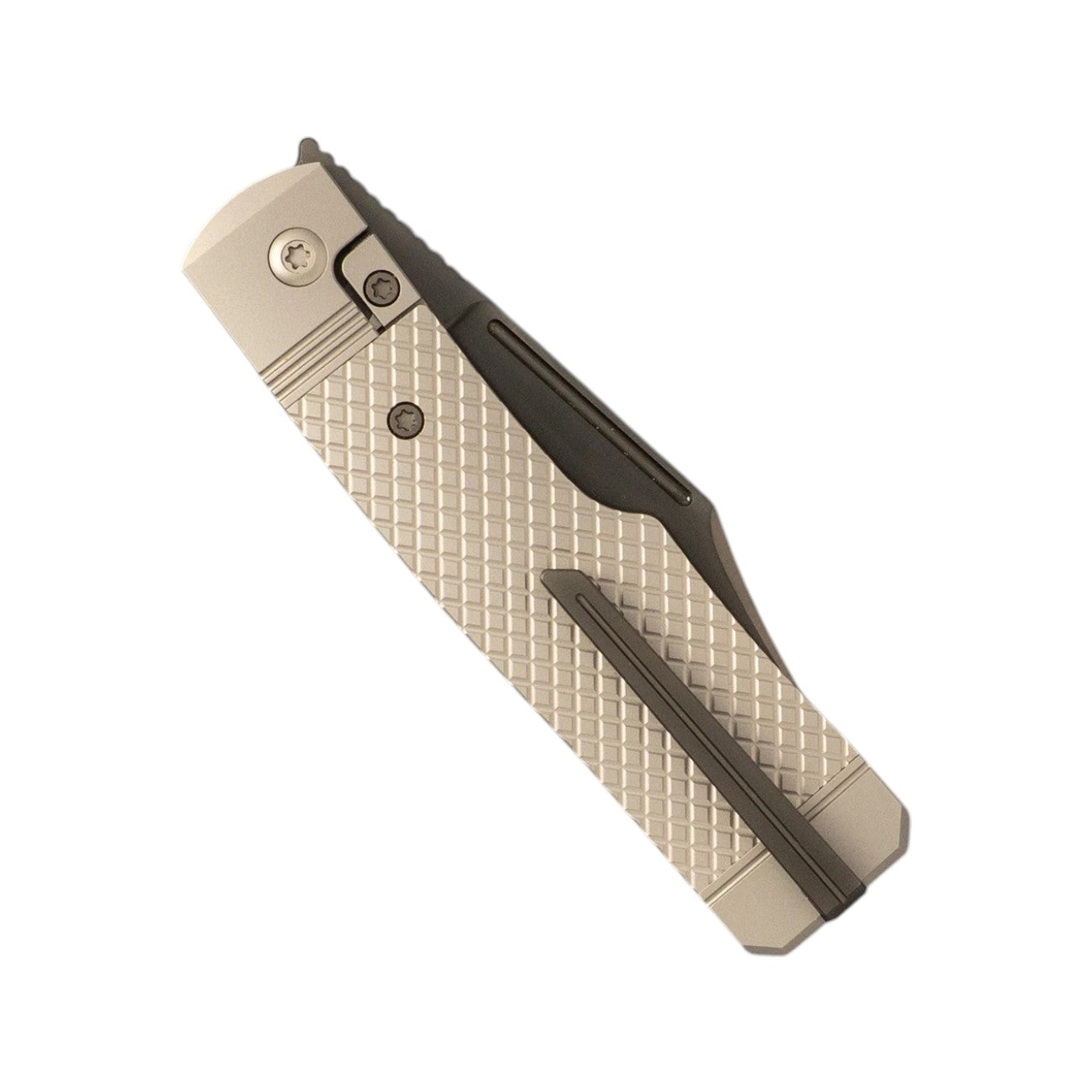 Finished with titanium hardware throughout, including a bronze anodized clip, dark blasted backspacer, and pivot collar. A steel lock bar insert ensures long-term durability.