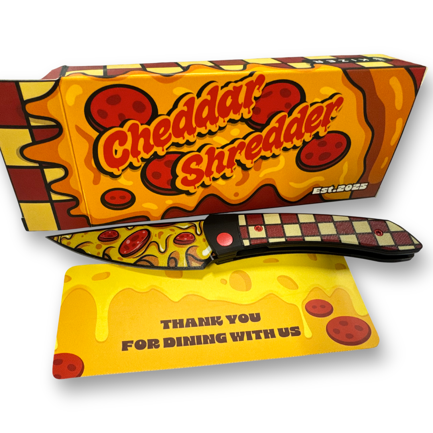 The Kizer Mini Momo Cheddar Shredder is a BladeHQ x Blade City Exclusive release, limited to only 300 pieces and designed for collectors who want a fun, high-performance twist on one of Kizer’s most compact EDC cutters. This special edition transforms the Mini Momo with upgraded steel, exclusive materials, and a bold theme that stands out instantly.
