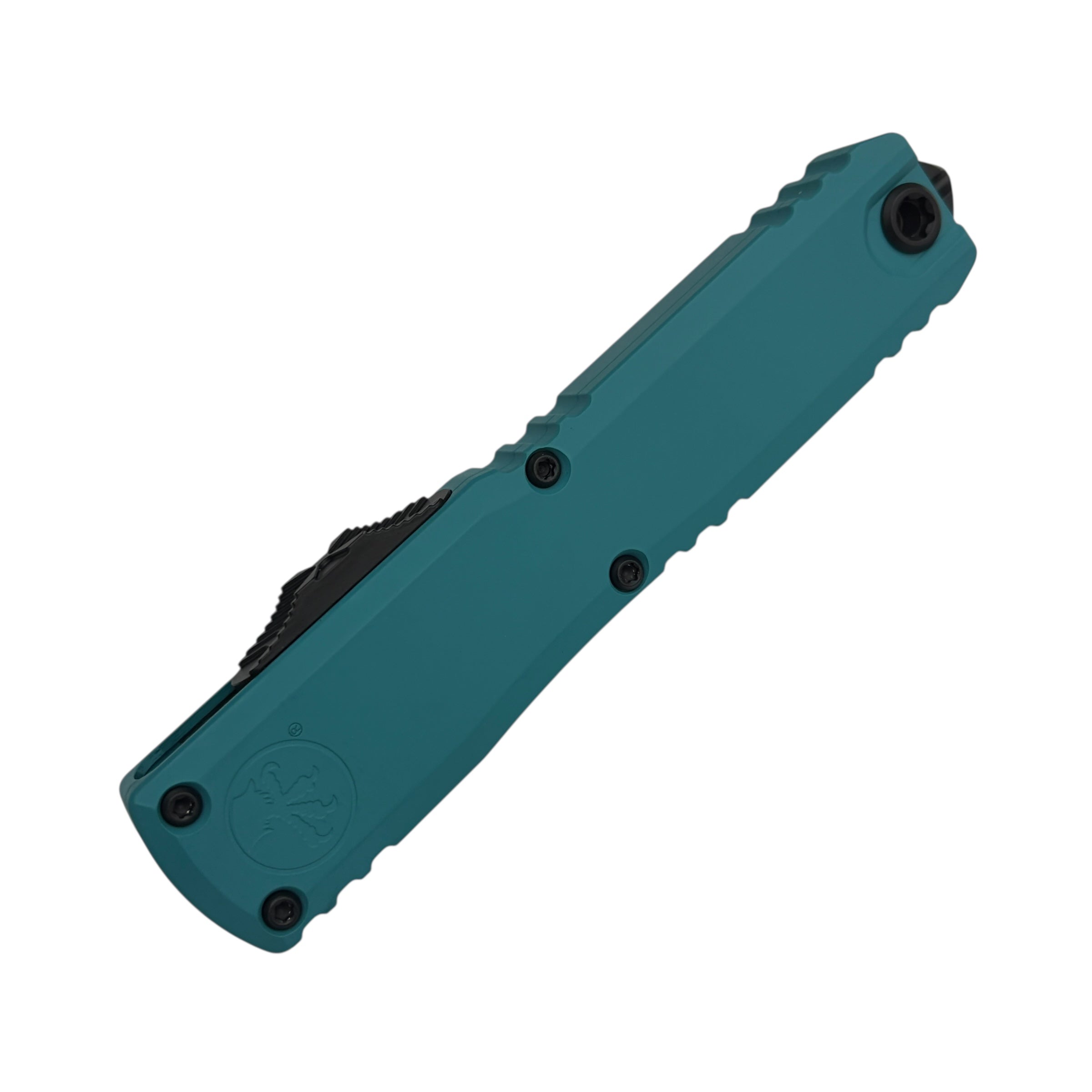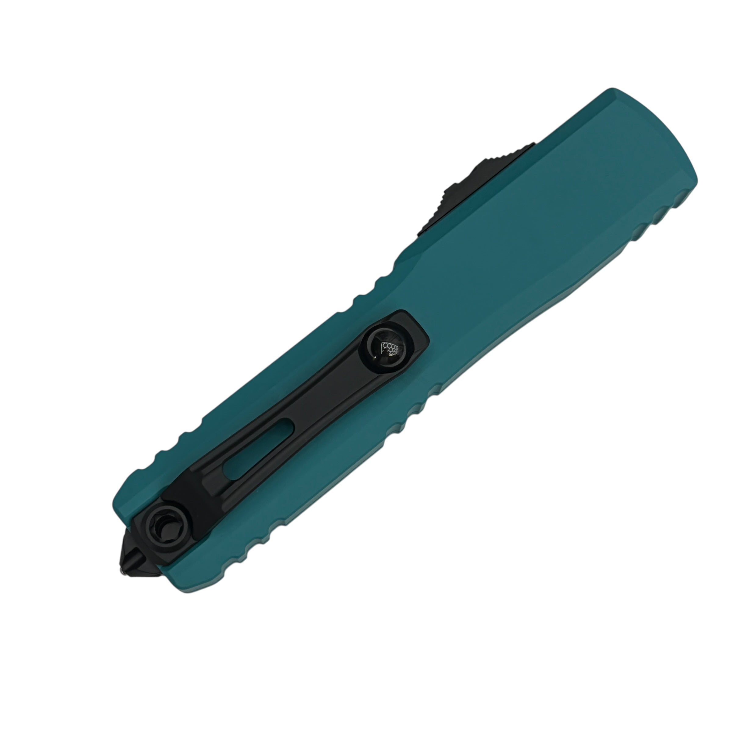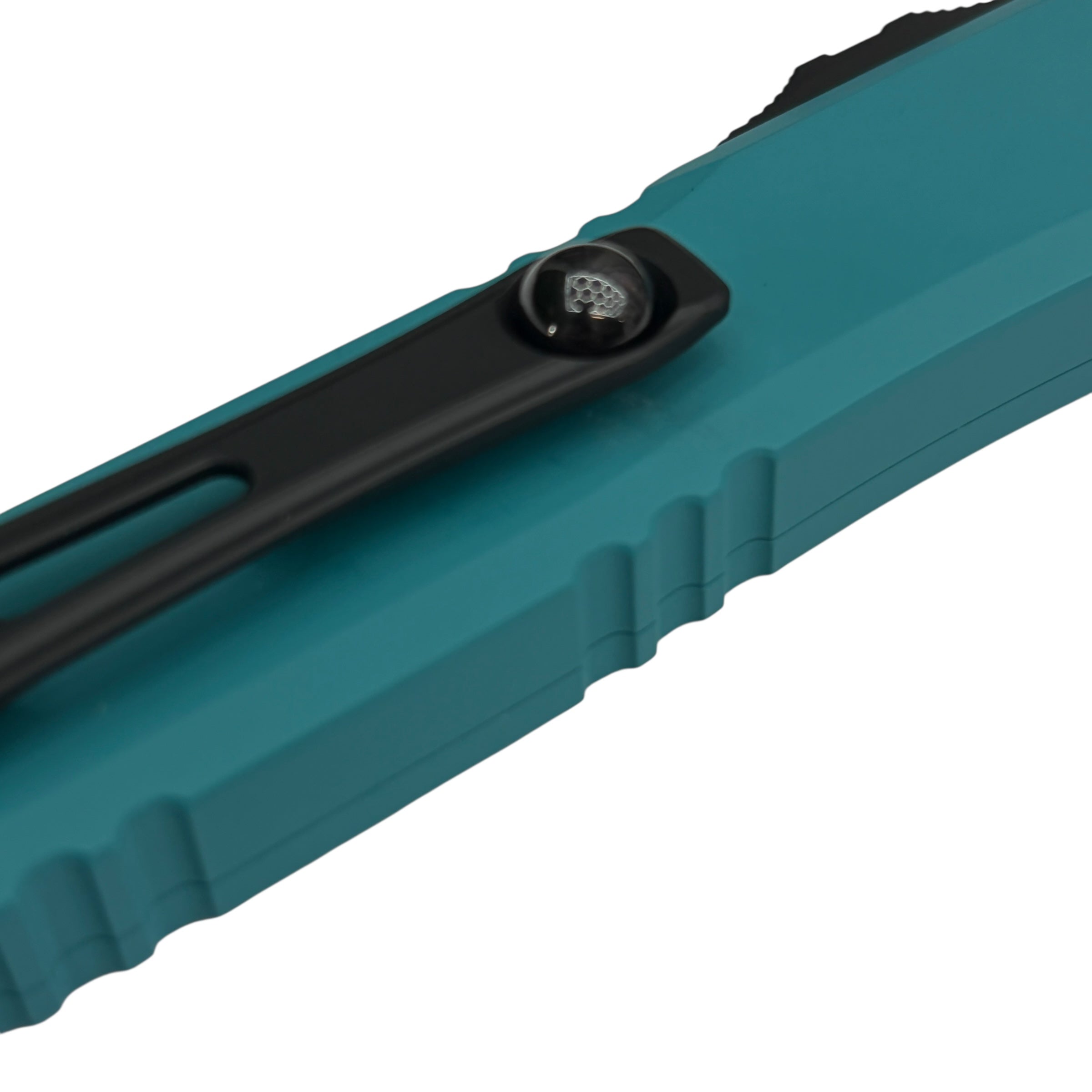 Paired with a cyan machined aluminum handle, this Ultratech stands out visually while maintaining the rugged durability Microtech is known for. The signature double-action OTF mechanism provides fast, confident deployment and retraction with a crisp, authoritative feel.