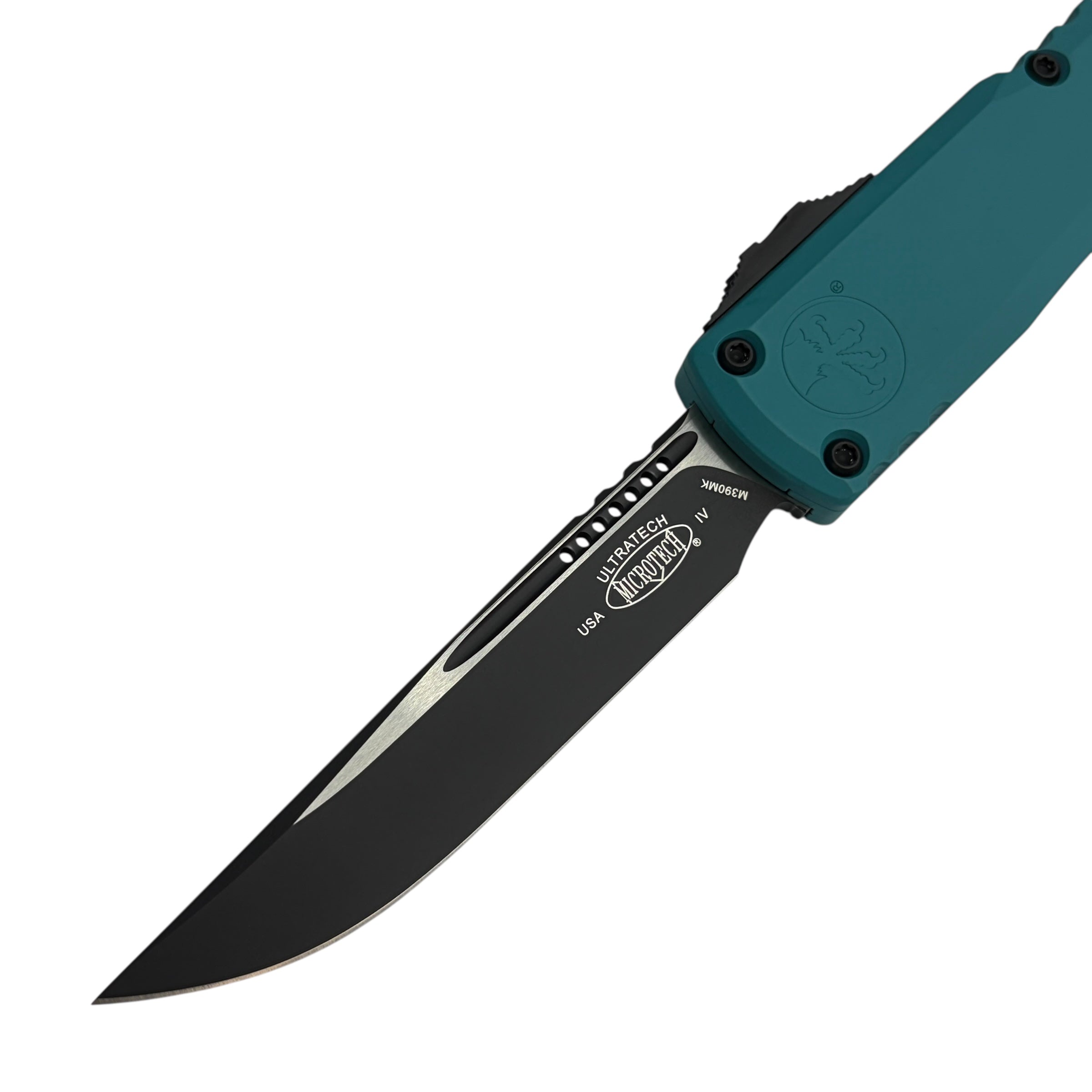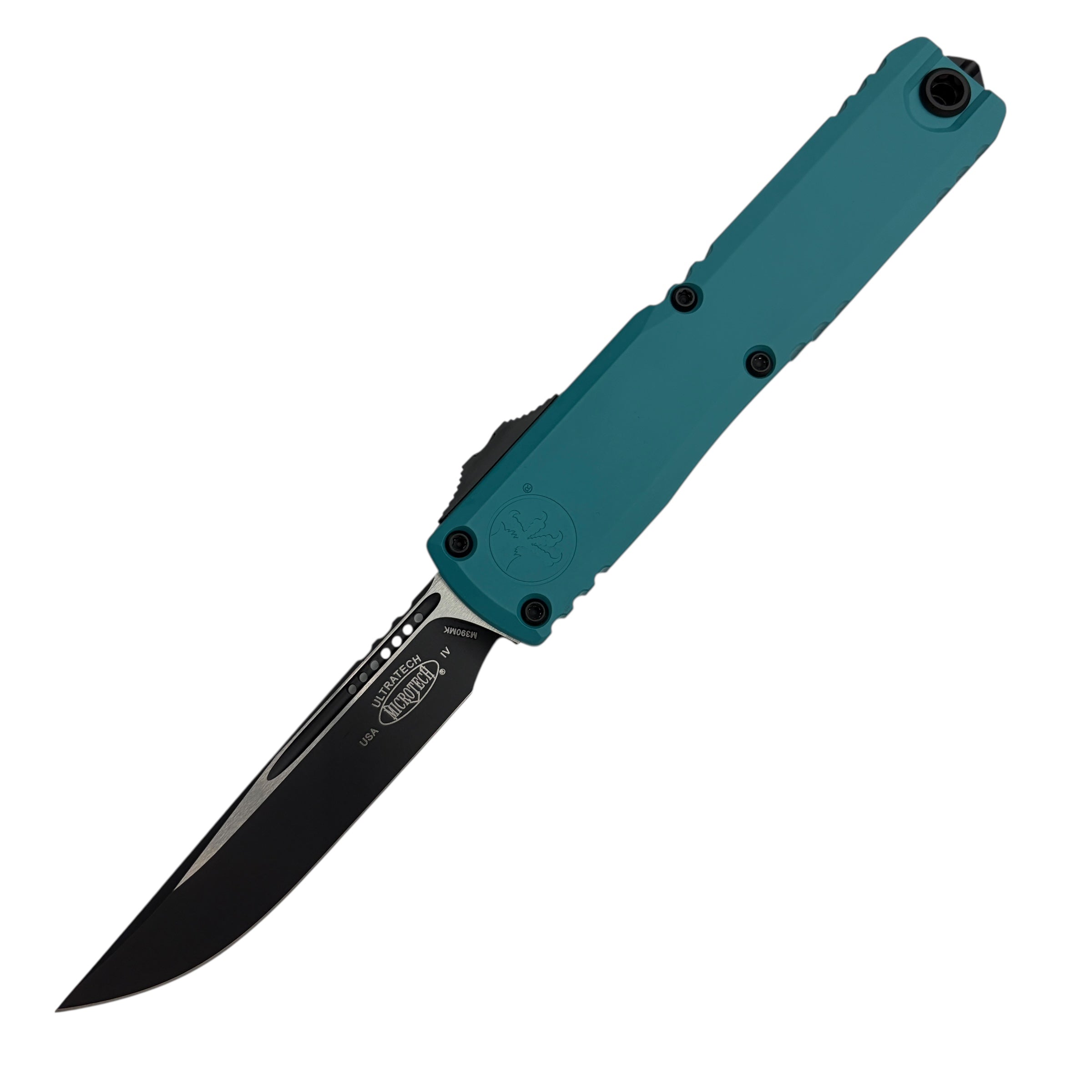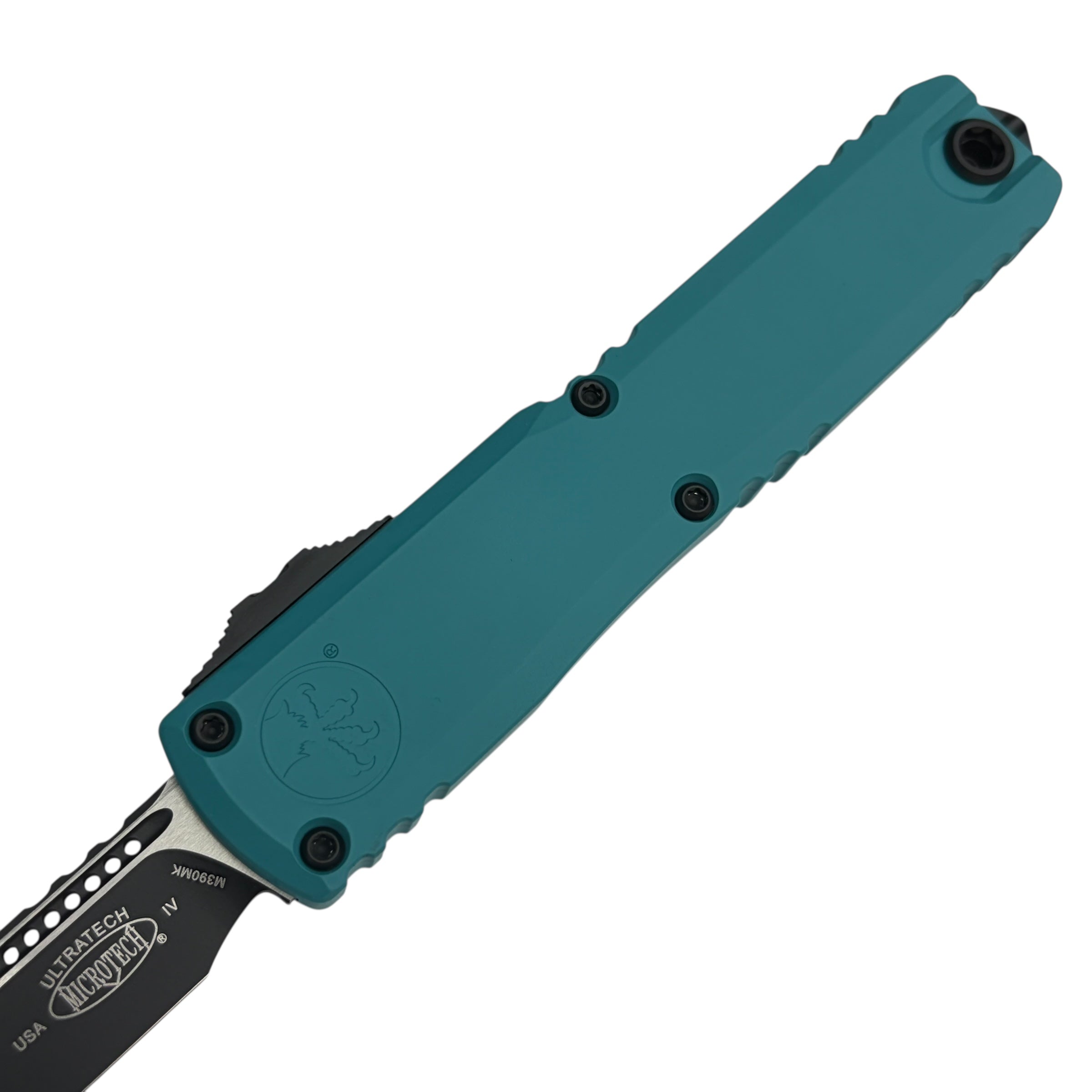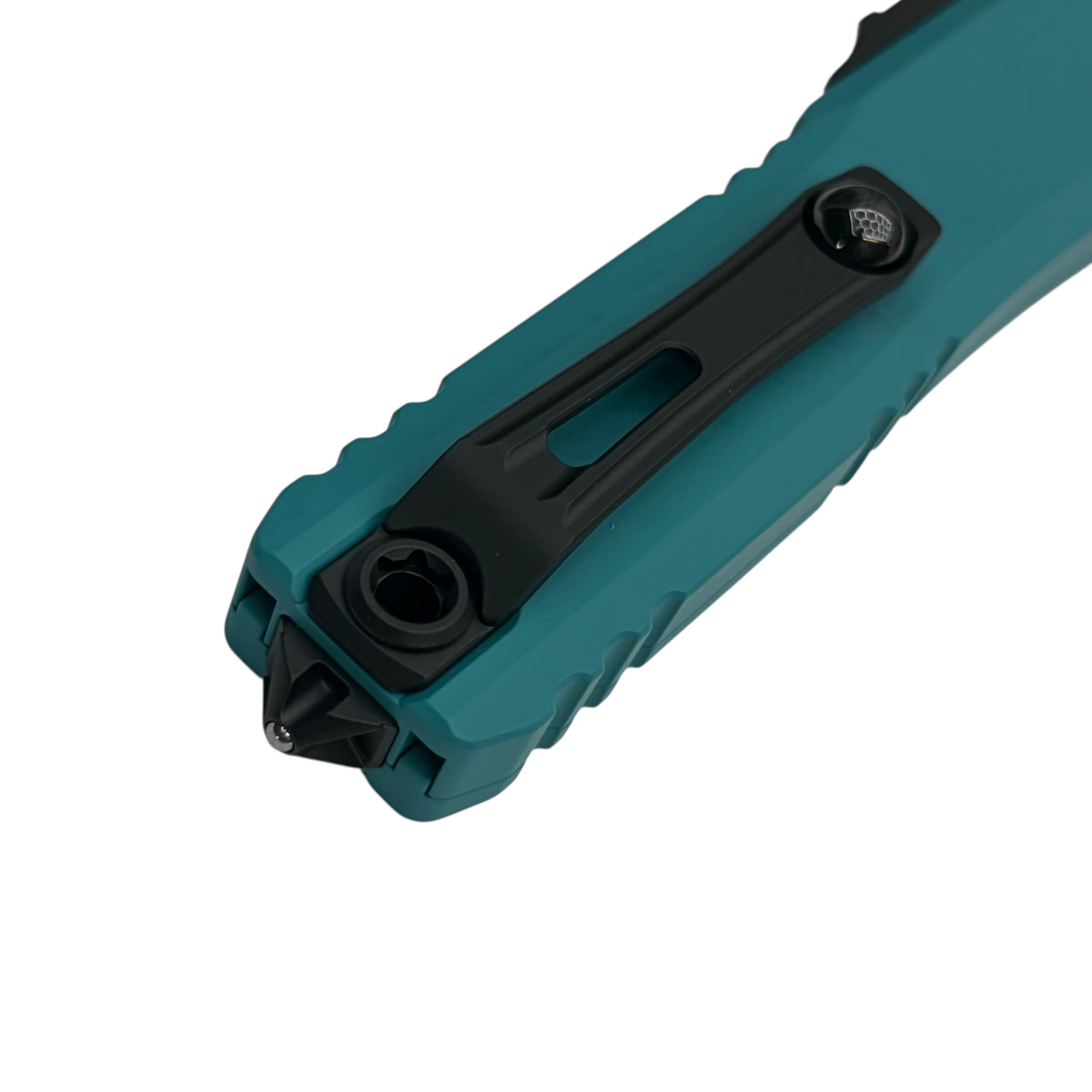Paired with a cyan machined aluminum handle, this Ultratech stands out visually while maintaining the rugged durability Microtech is known for. The signature double-action OTF mechanism provides fast, confident deployment and retraction with a crisp, authoritative feel.
