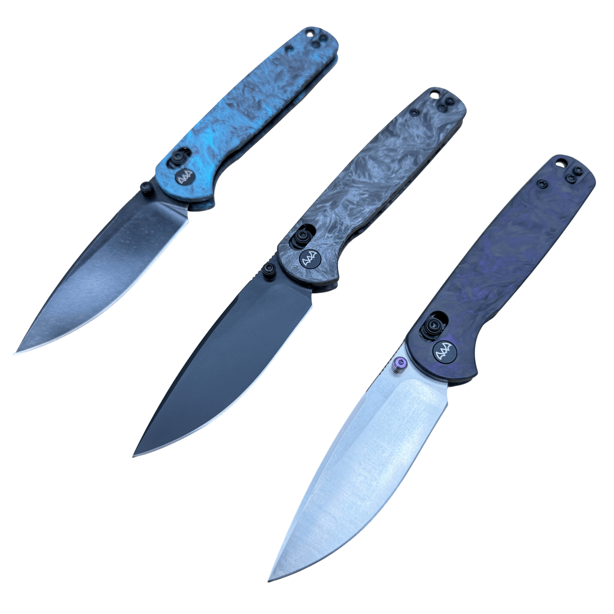 This model is offered in three carbon fiber handle options—Black Carbon Fiber, Purple Carbon Fiber, and Blue Carbon Fiber. Each colorway features a layered carbon weave that keeps the knife lightweight while adding rigidity and standout style. The ergonomic shaping provides a secure, comfortable grip, making the Drax well-suited for daily carry and extended tasks.